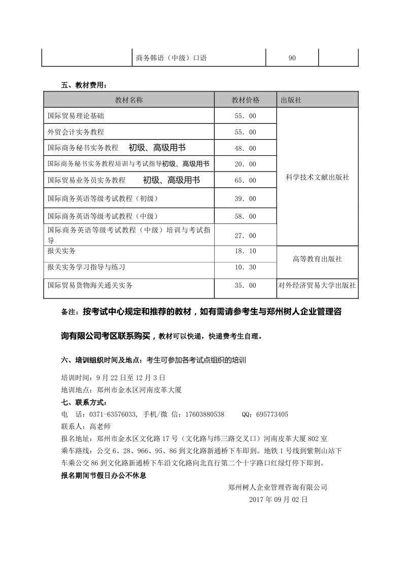 关于2017下半年全国外经贸从业人员证书河南地区考务通知