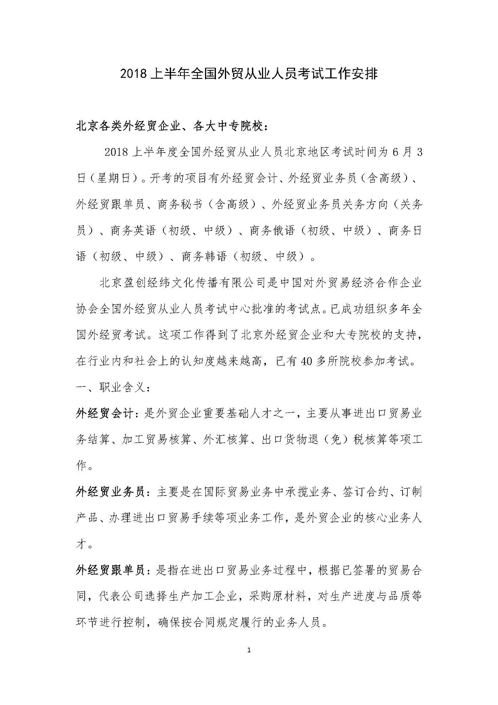 【北京盈创】2018年上半年全国外经贸从业人员考试工作安排